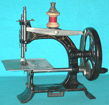 A bit of a mystery, this machine. It strongly resembles a Muller 10, however, the main frame and stitchplate are of different proportions, and I have not yet seen positive confirmation of Muller identity.