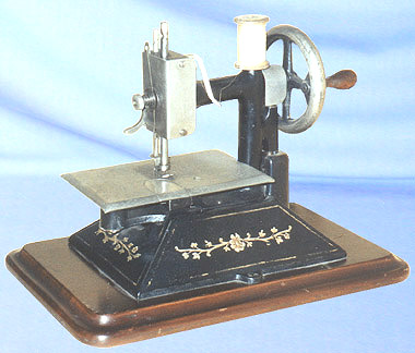 The manufacturer of this miniature lockstitch machine has, as yet, not been verified.